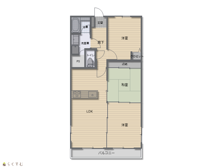 | 面積 | 66.78㎡ /20.2坪 | 方位 | 南西 |
