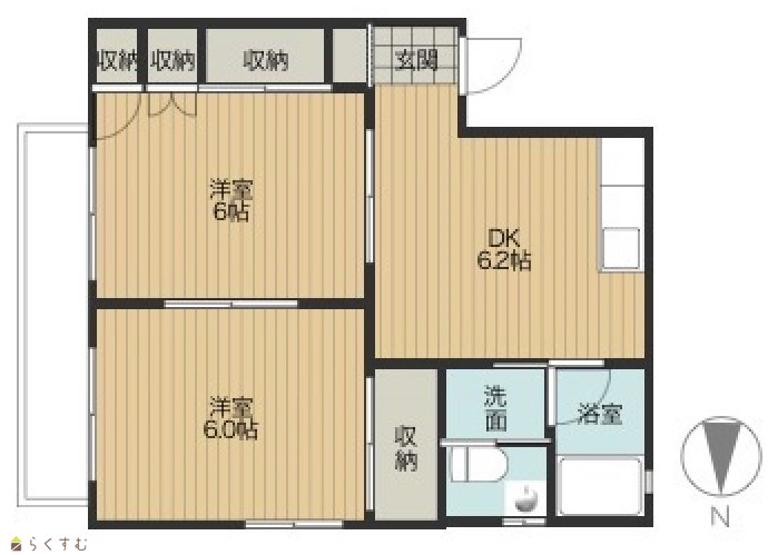 | 間取り | 2DK (洋室:6、6) 6.2 |