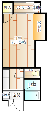 敷金・礼金なし対象物件。一人暮らしに嬉しいオール電化、造り付けベット&サンルーム付。