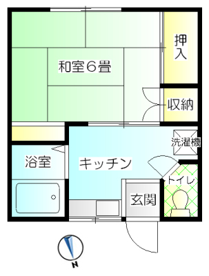 | 間取り | 1K (和室:6畳) | ||