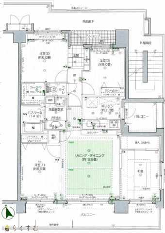 間取り 4LDK (和室:6畳) (洋室:6.5、6、5)