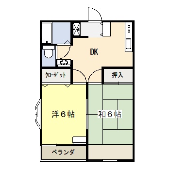 | 間取り | 2DK (和室:6畳) (洋室:6) DK |
