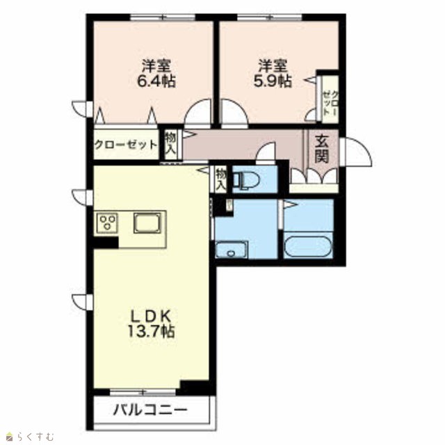 | 間取り | 2LDK (洋室:5.9、6.4) | ||