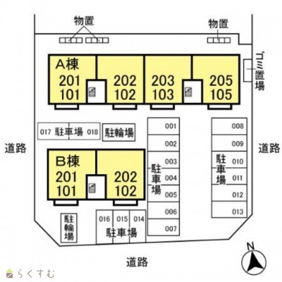 | 所在階/階数 | 1階/2階 | 号室 | 101号室 |