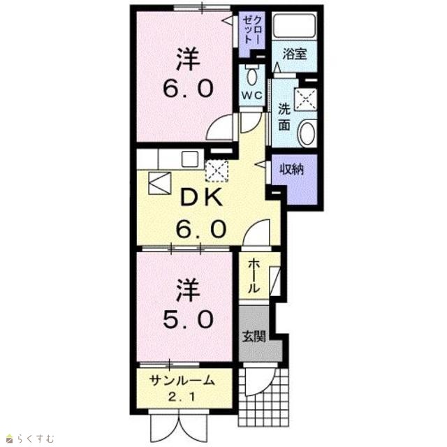 | 間取り | 2DK (洋室:6、5) | ||