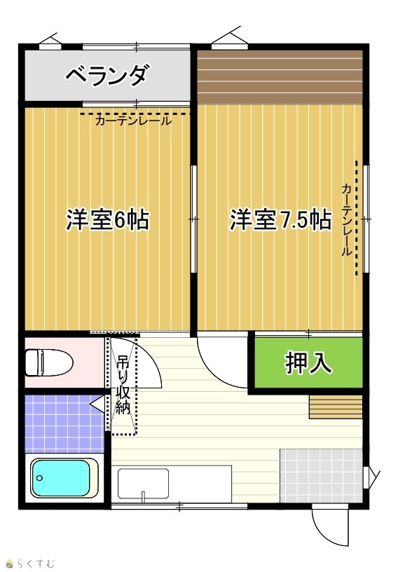 | 間取り | 2K (洋室:6.0、6.0) K4.0 |