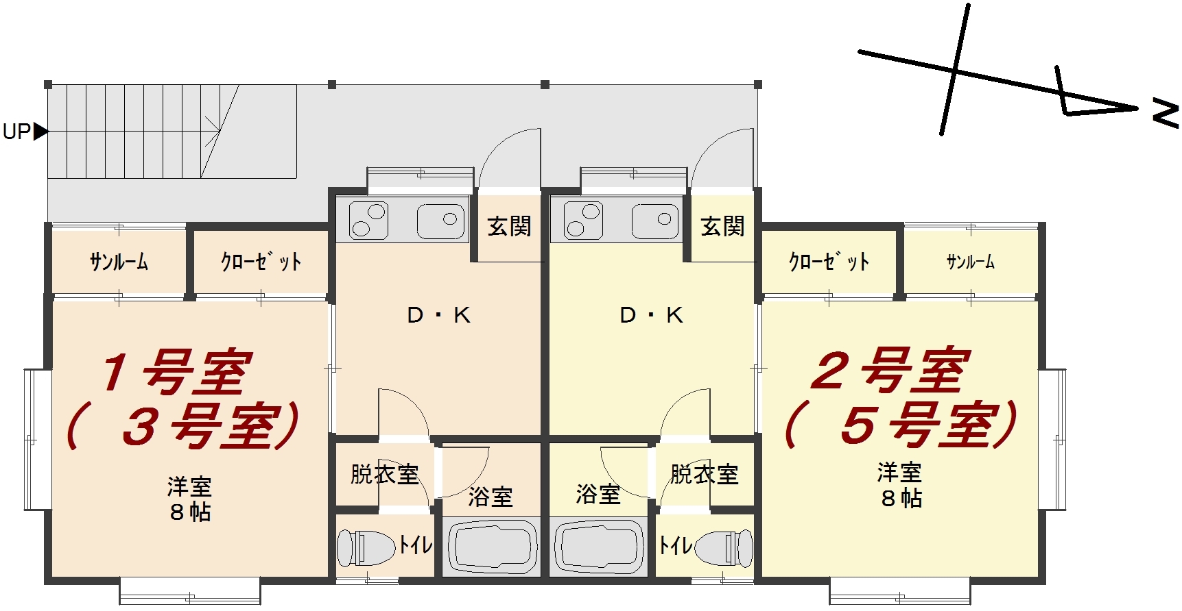 | 所在階/階数 | 1階/2階 | 号室 | 2号室 |