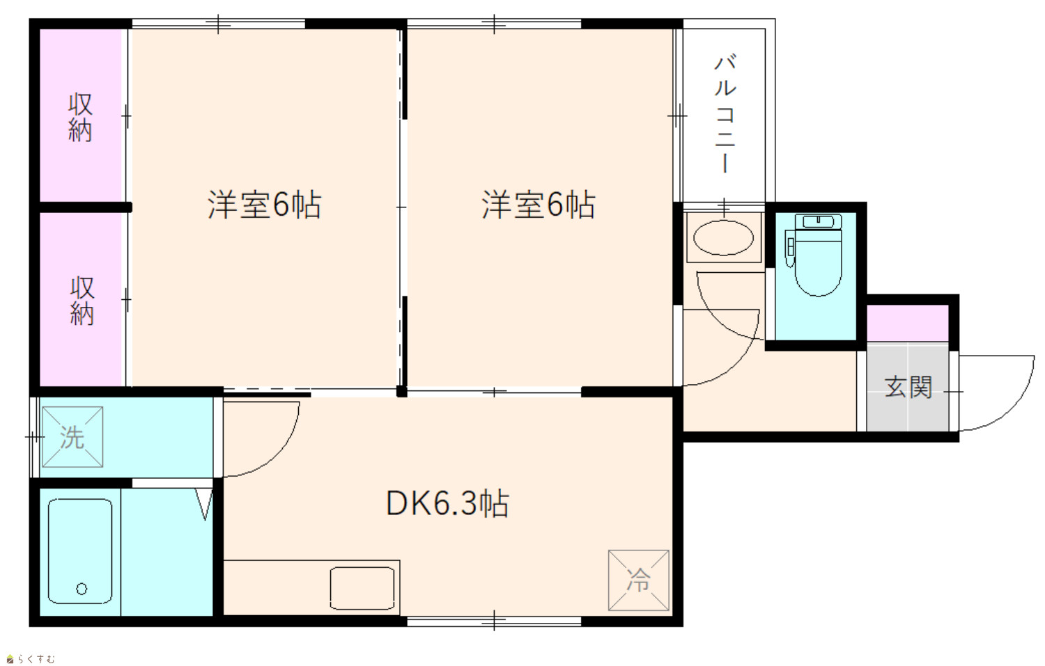 間取り 2DK (洋室:6、6)