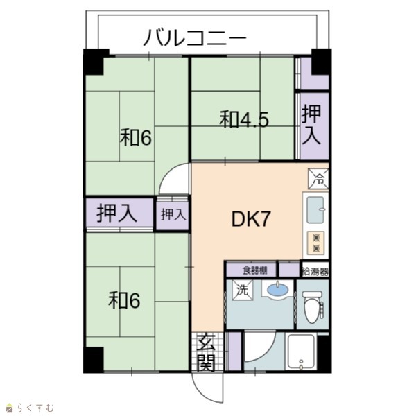 | 間取り | 3DK (和室:6畳、6畳、4.5畳) DK7 |