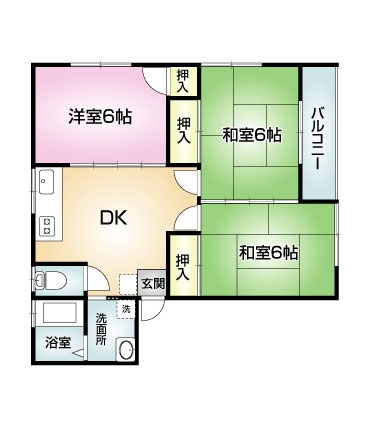 | 間取り | 3DK (和室:6畳、6畳) (洋室:6) | ||