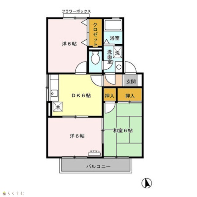 | 間取り | 3DK (和室:6畳) (洋室:6、6) | ||