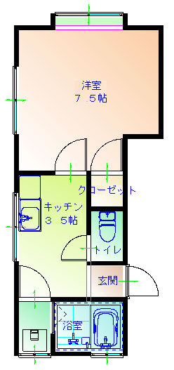 | 間取り | 1DK (洋室:7.5) | ||
