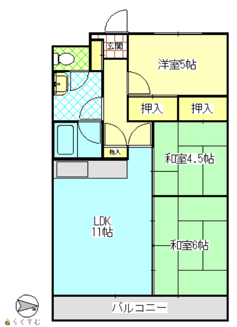 | 間取り | 3LDK (和室:6畳、4.5畳) (洋室:5) LDK10 物入れあり |