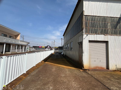 | 備考 | 正面出入口は、開口が高さ約4.9m、幅約4.5mあります。 用途地域は準工業地域で、元々は金属加工工場でした。 使用用途によっては、建築士等に確認が必要な場合もあります。 お気軽にご相談ください。 |