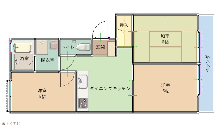 | 間取り | 3DK (和室:6.0畳) (洋室:6.0、5.0) DK6.9 |
