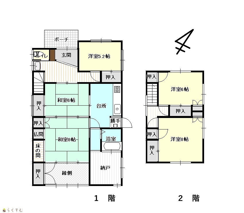 | 間取り | 5K (和室:6畳、8畳) (洋室:5.2、6、8) | ||