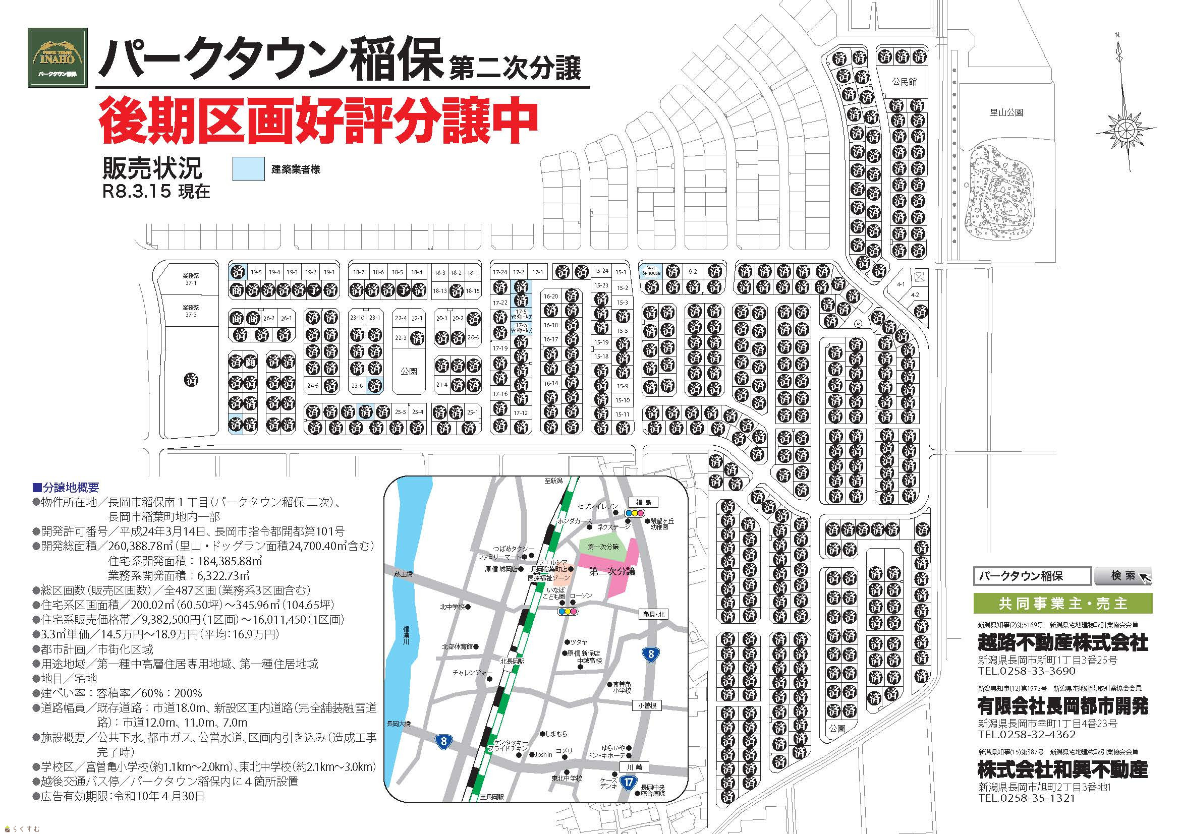 | 稲保地区に新規の大規模分譲地誕生!里山公園・ドッグラン併設。全車道に消雪パイプ埋設済み。 | |||