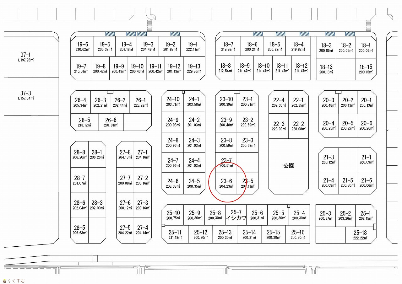 【おかげさまで契約件数420区画突破】パークタウン稲保後期造成工事 第8期区画23-6 南/西角地の整形60坪。前面道路は7.0mのゆったり設計!車道は消雪パイプ設置済で冬も安心です。【仲介料不要・建築条件無し】