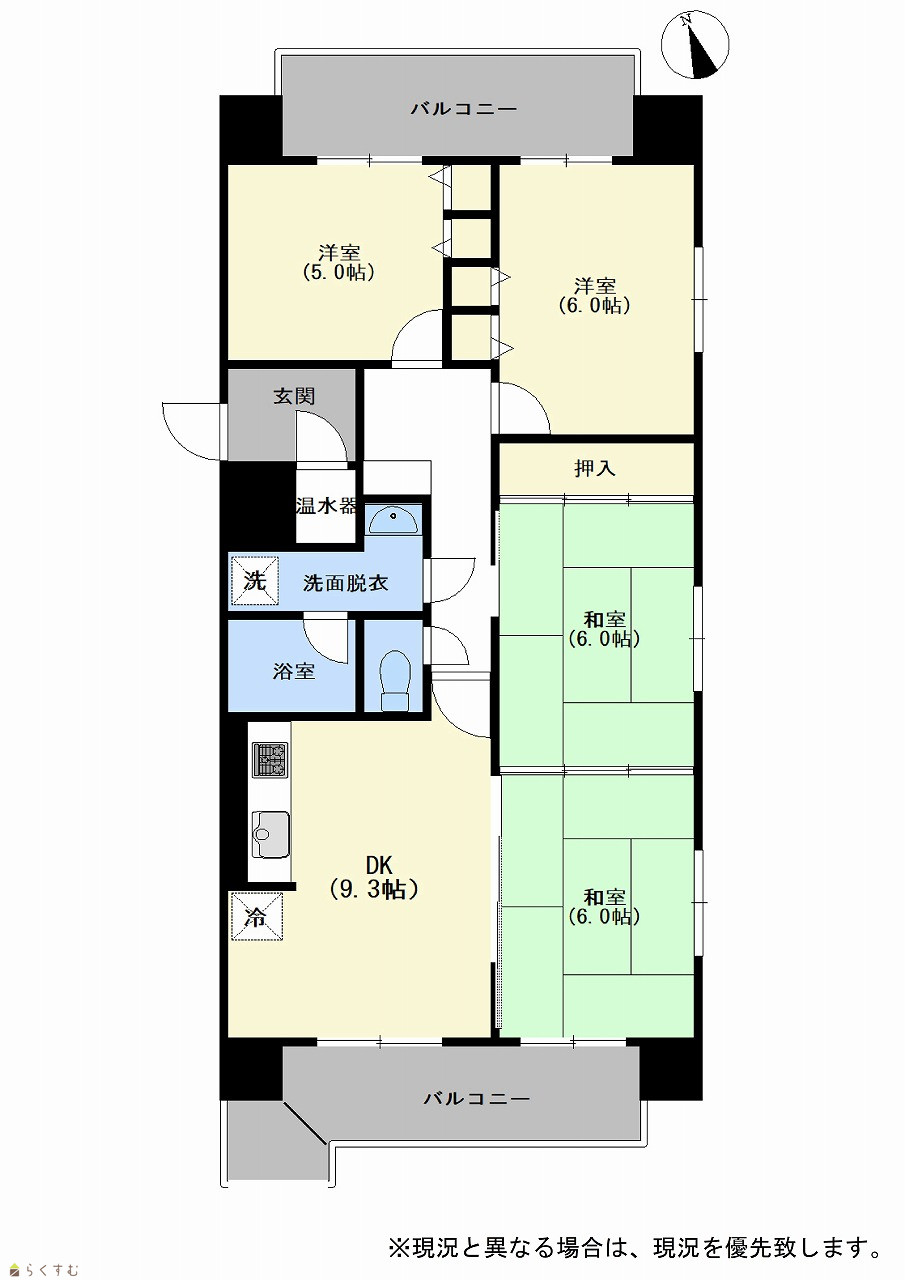 4DK (和室:6.0畳、6.0畳) (洋室:6.0、5.0) DK9.3 |
