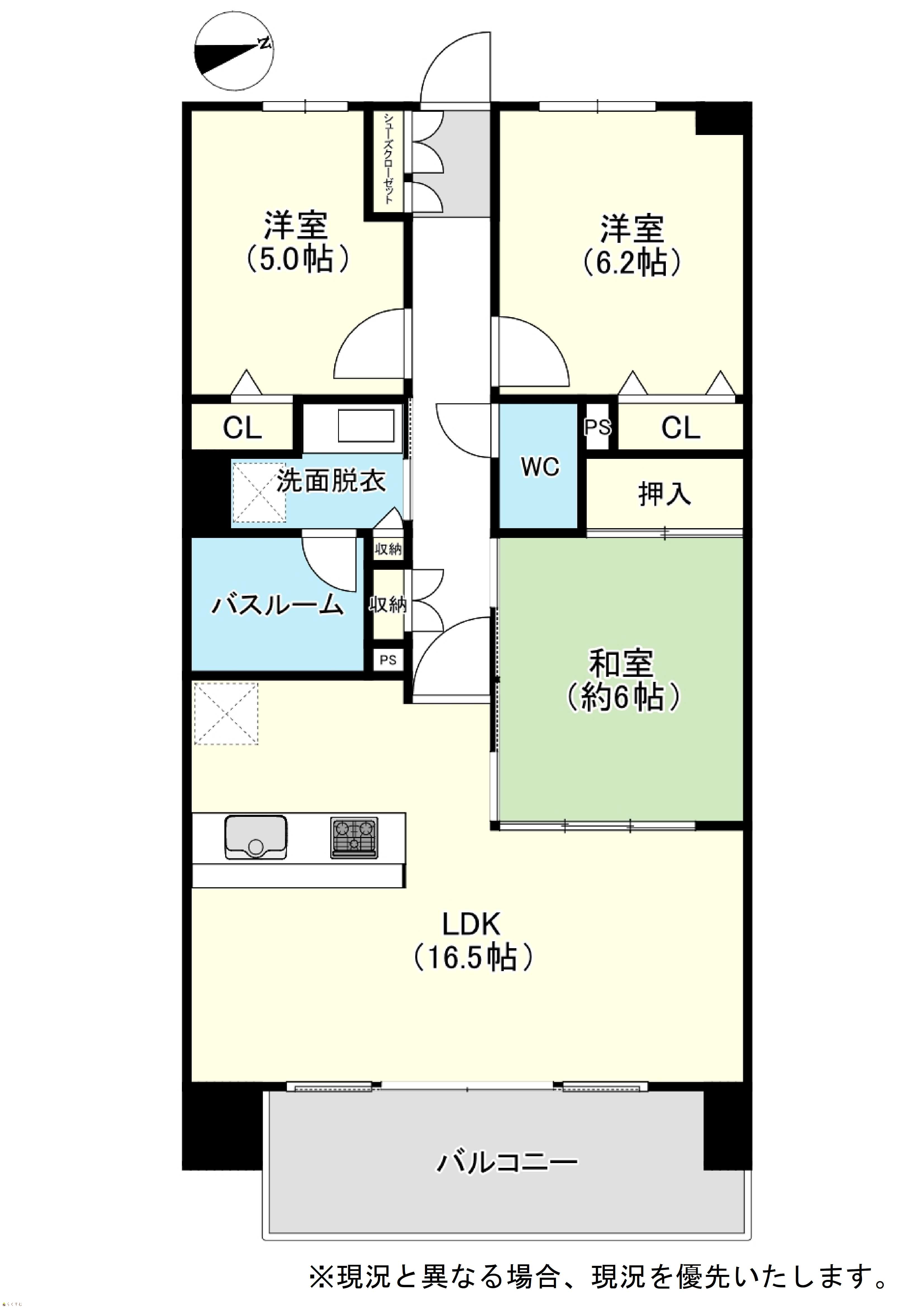 3LDK (和室:6畳) (洋室:6.2、5.0) LDK15.6 |