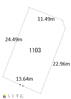 | 形状 | 間口 11.49m × 奥行 24.49m | 道路 | 北側公道 幅員7.8m 東側公道 幅員3.6m |