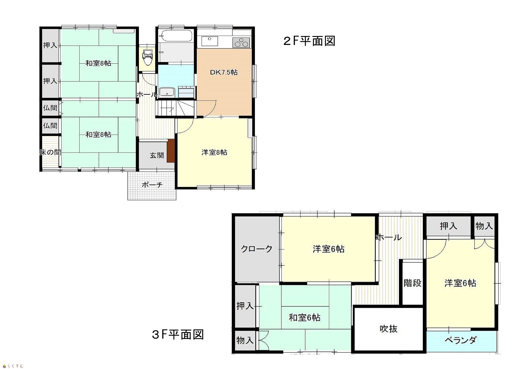 6DK (和室:8畳、8畳、6畳) (洋室:8、6、6) DK7 |