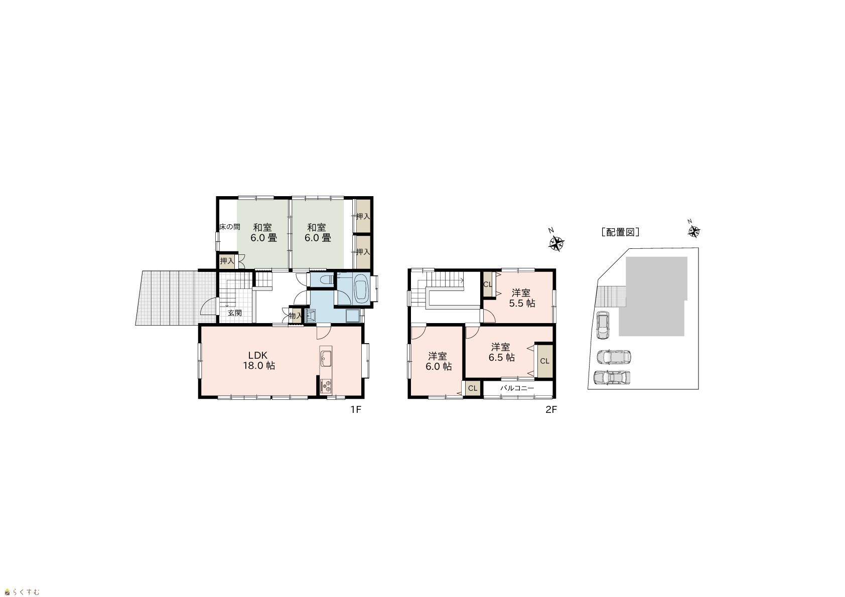 5LDK (和室:6畳、6畳) (洋室:6.5、6、5.5) LDK18 |