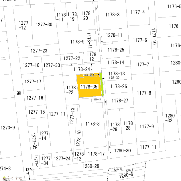 | 備考 | ・私道(同1178-32、1178-36)を同時売買とします。表示の面積には含んでおりません。 ・表示面積にはセットバック面積(未測量)を含みます。測量は春になりますのでご了承ください。 ・未測量のため、容積率の表示は前面道路幅による制限について加味していません。 |