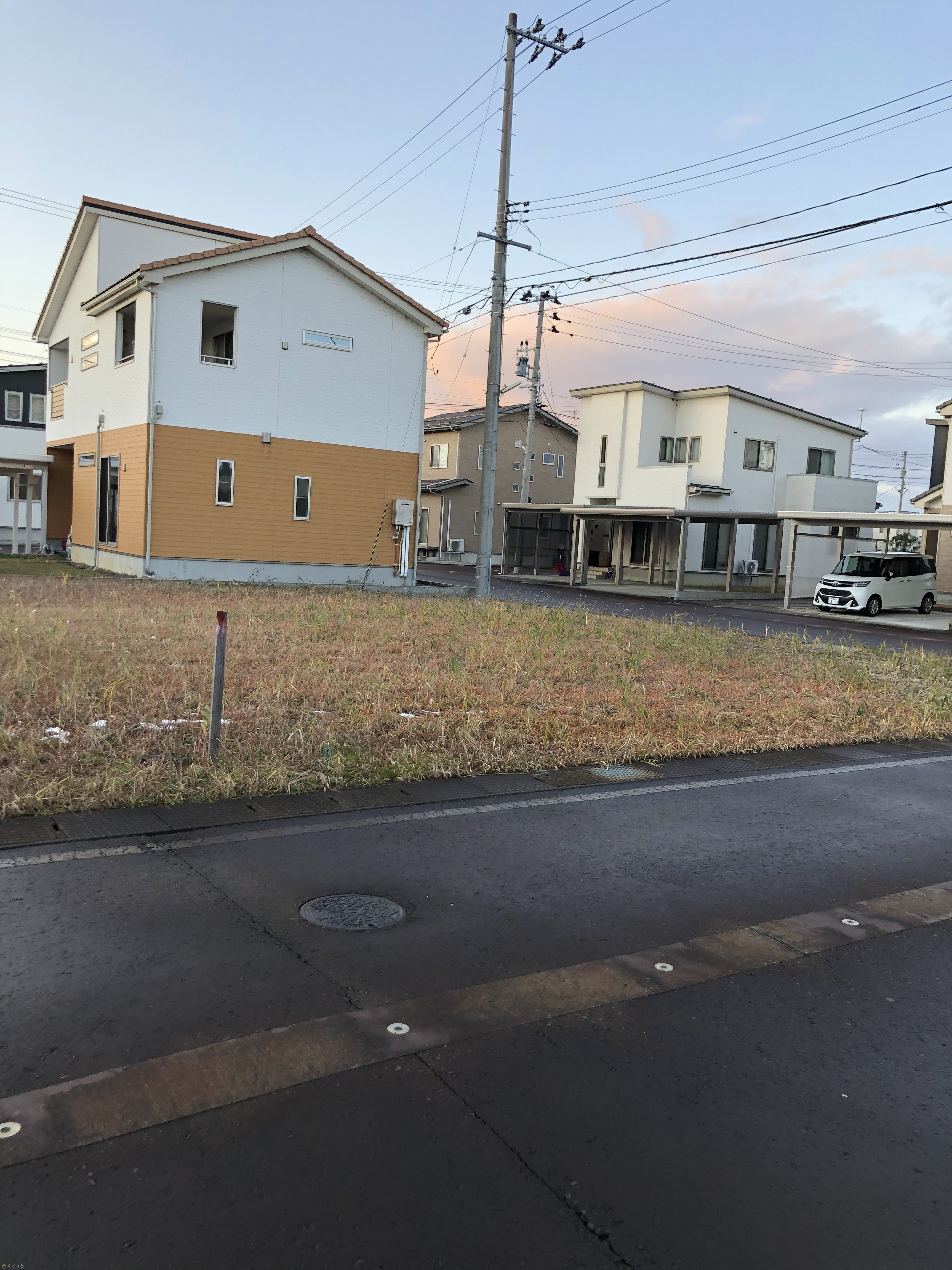| 設備 | 角地、前道6m以上、更地、スーパー近く、閑静な住宅街、建築条件なし、所有権、側溝、上水道(前面道路)、都市ガス(宅地内)、下水道(宅地内)、前面道路融雪設備あり、住宅向け | ||