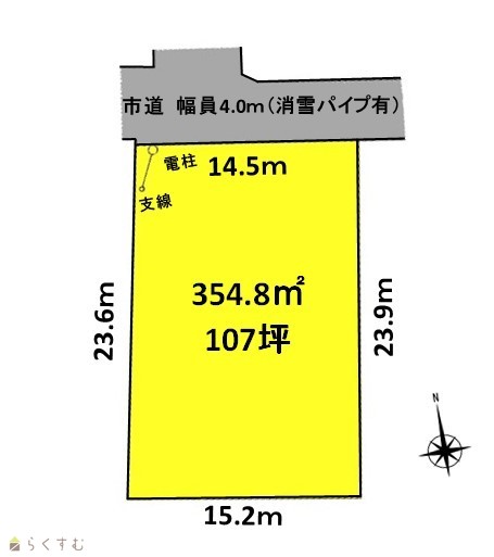 | 形状 | 間口 14.5m × 奥行 23.9m | 道路 | 市道 幅員4.0m(消雪パイプ有) |