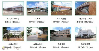 | 上下水道が引込済みの為、住宅建築のコストを抑えられる好条件。スーパーマルイやコメリ、セブンイレブンが車で5分圏内で便利。 | |||
