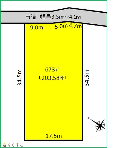 | 形状 | 間口 18.7m × 奥行 34.5m | 道路 | 市道 幅員3.3~4.1m |