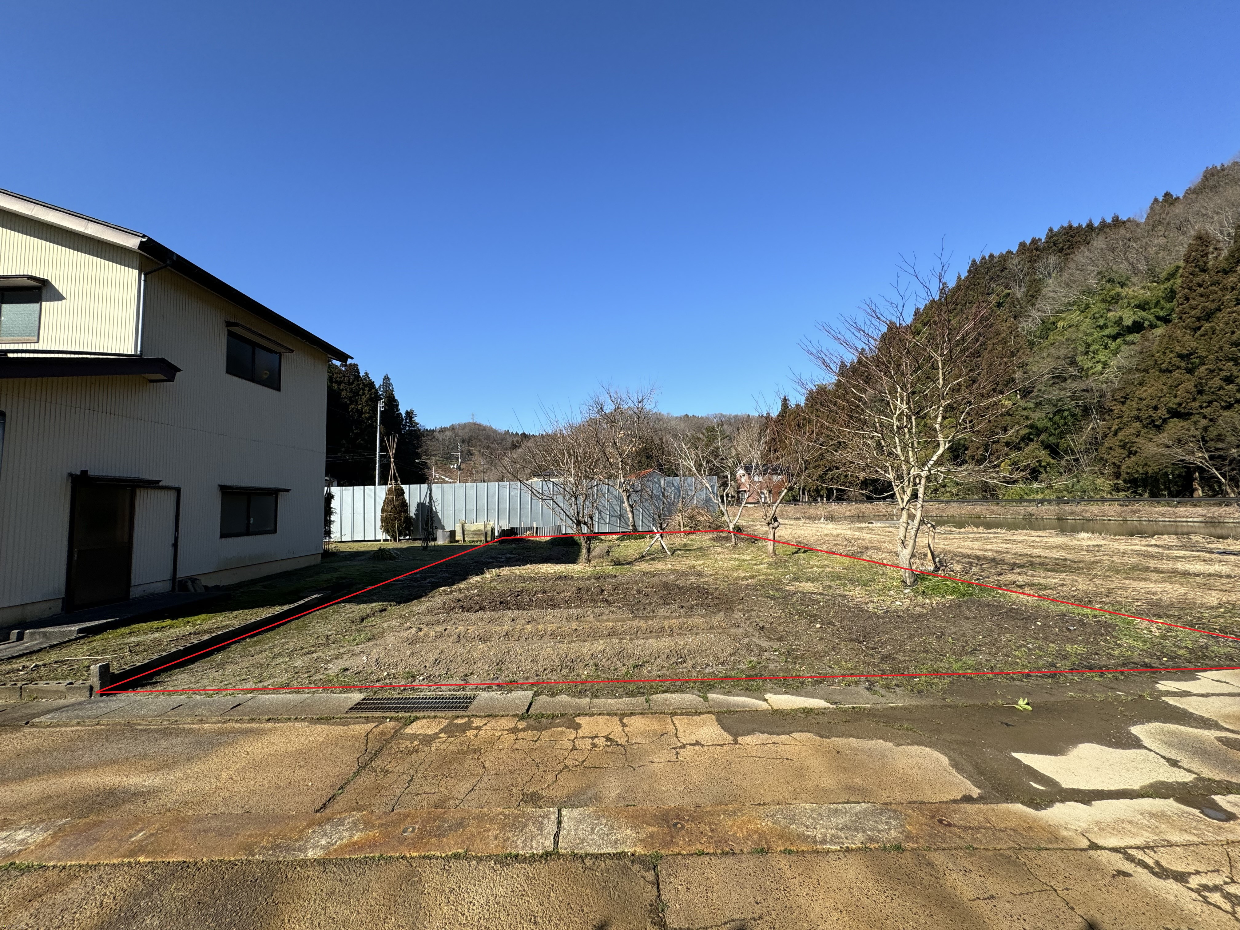 | 前面道路に消雪パイプが設置されています。 近くに池、山があり景色が素晴らしいです。 | |||