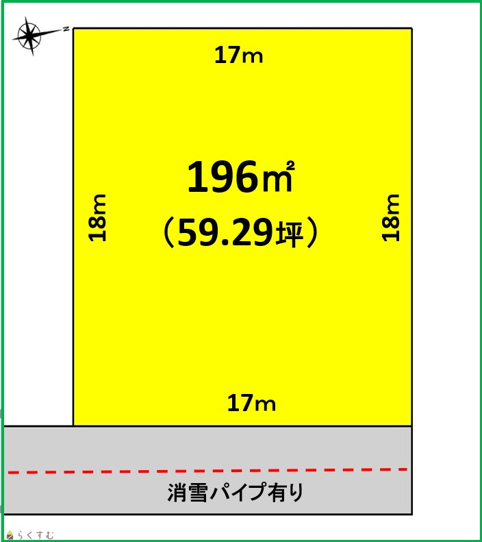 | 形状 | 間口 17m × 奥行 18m | 道路 | 市道139号線 幅員4.0m 消雪パイプあり |