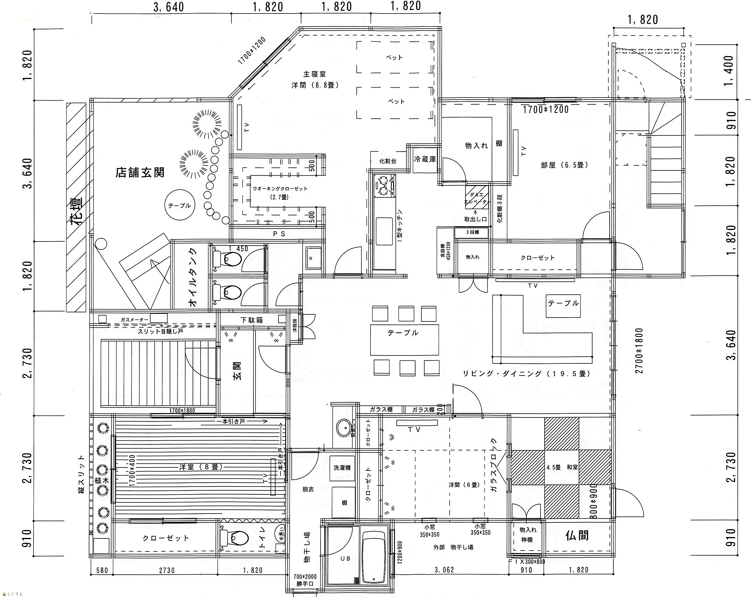 5LDK (和室:4.5畳) (洋室:8.8、8、6.5、6) 19.5 |