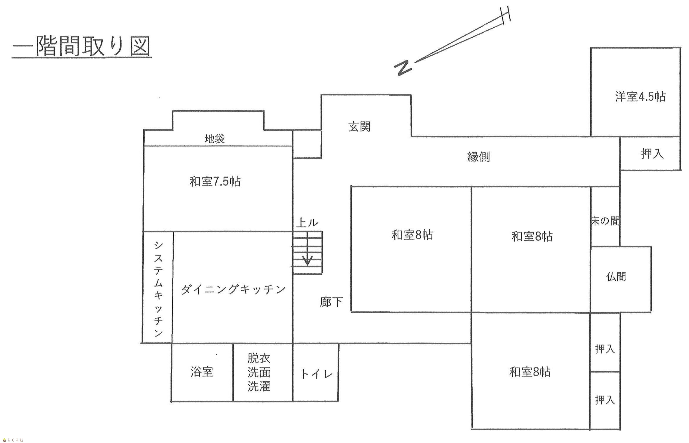 | 備考 | 昭和50年増築、平成15年増築(水廻り設備更新リフォーム)、平成16年屋根葺き替え、サッシ入替え(ペアガラス化)等実施。 | ||
