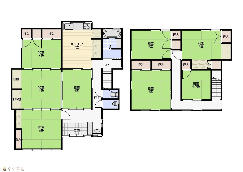 | 間取り | 8DK (和室:8畳、8畳、6畳、6畳、8畳、6畳、6畳、4.5畳) | ||
