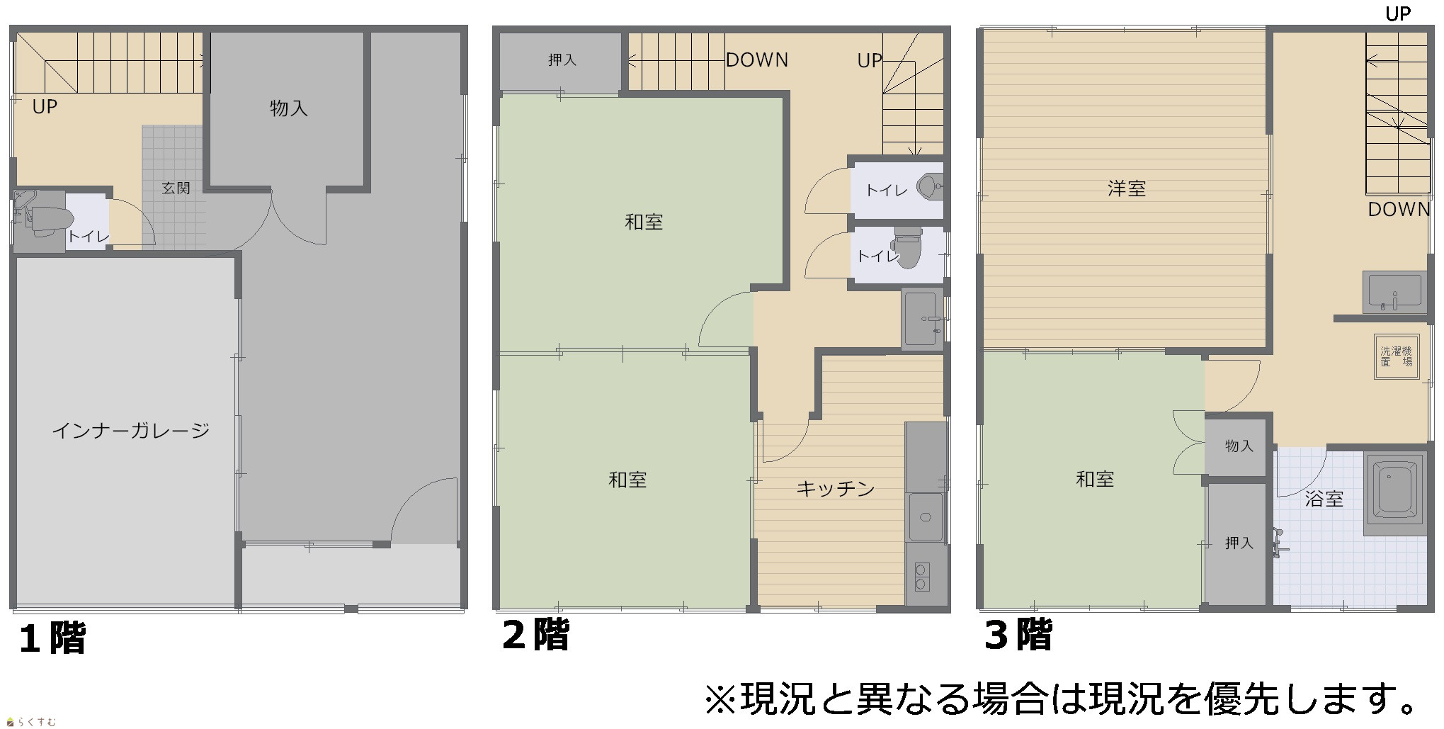 | 建物面積 | 1階 39.74㎡/ 2階 44.71㎡/ 3階 44.71㎡/ 計 129.16㎡ /39.07坪 | ||