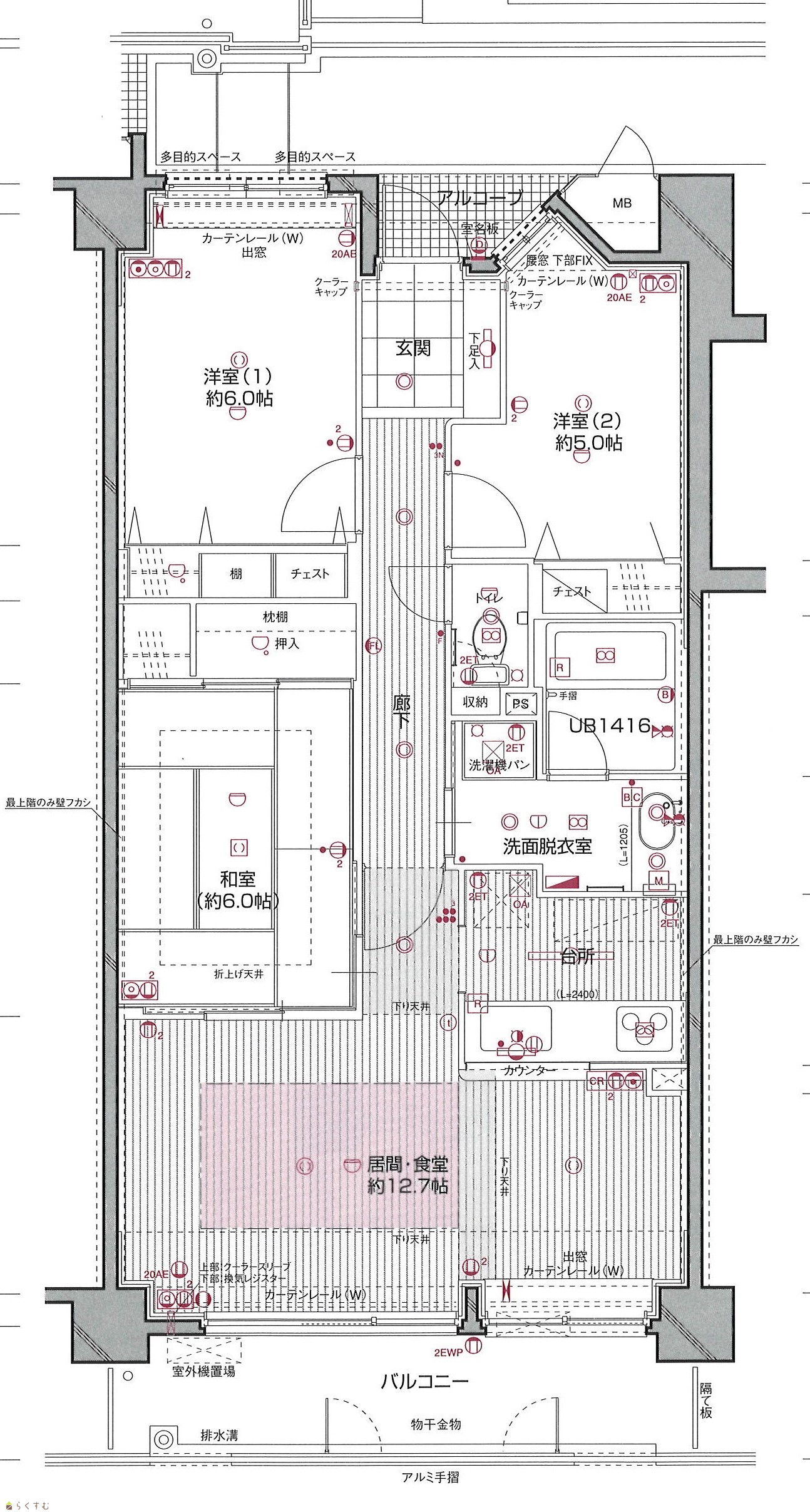 3LDK (和室:6畳) (洋室:6、5) LDK12.7 |