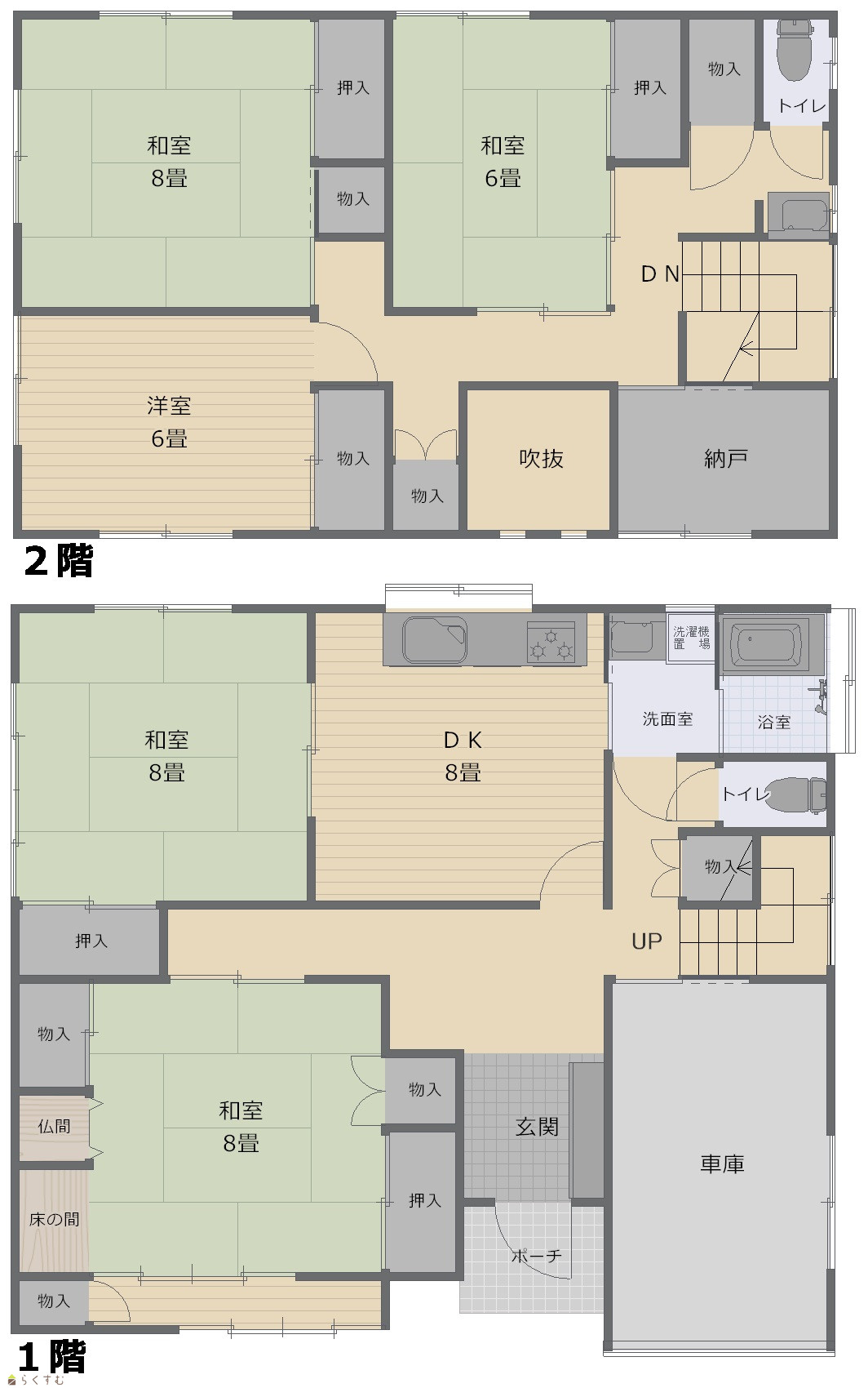 5DK (和室:8畳、8畳、8畳、6畳) (洋室:6) DK8 |