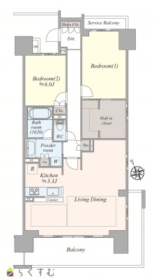 | 全居室6帖以上+大型WICが魅力的な2LDKプラン! | |||