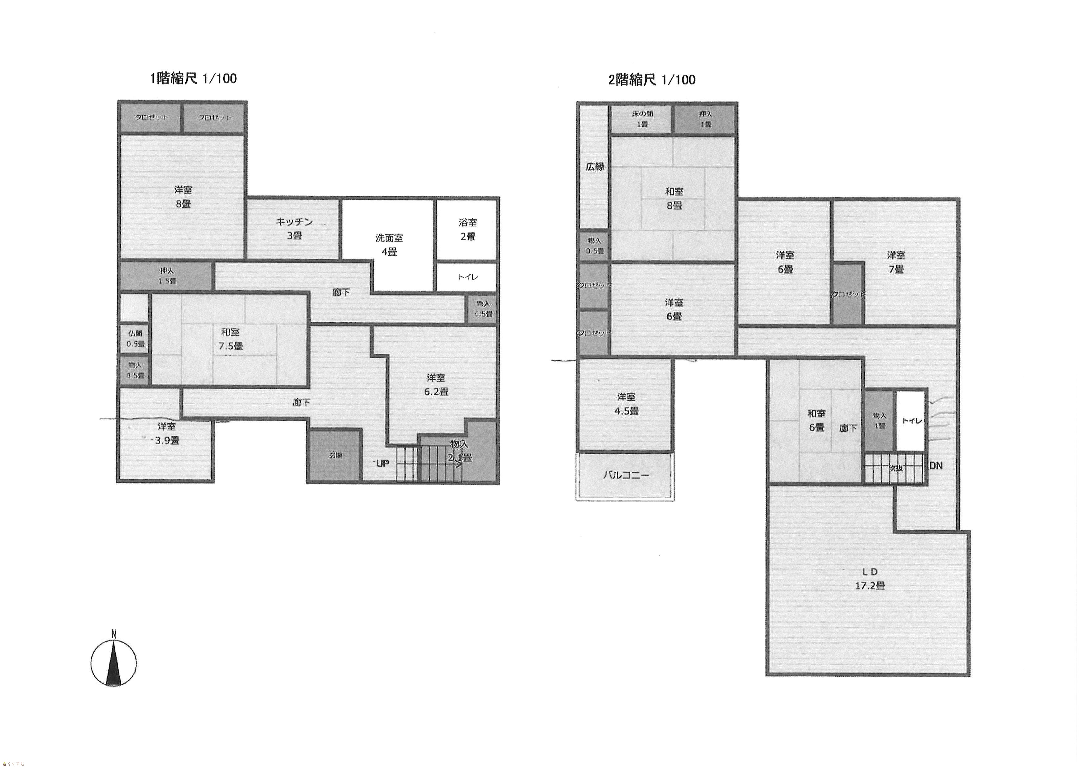 10LDK (和室:7.5畳、8畳、6畳) (洋室:8、6.2、3.9、6、6、7、4.5) LDK17.2 内覧をご希望の方は事前にご連絡をいただきますようお願いいたします。 |
