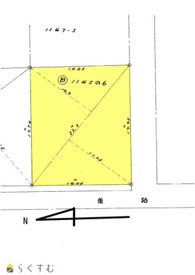 | 形状 | 間口 14.03m × 奥行 17.09m | 道路 | 西側:幅員4.2m |