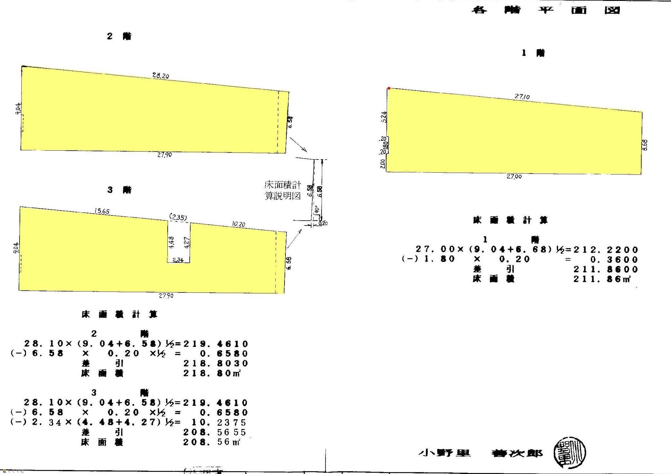 | 建物面積 | 1階 211.86㎡/ 2階 218.8㎡/ 3階 208.56㎡/ 計 639.22㎡ /193.36坪 | ||