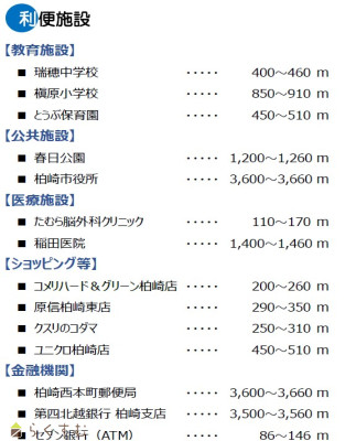 | 交通 | 駅:越後線 東柏崎駅から徒歩27分、バス:瑞穂中学校入口から徒歩3分 | ||