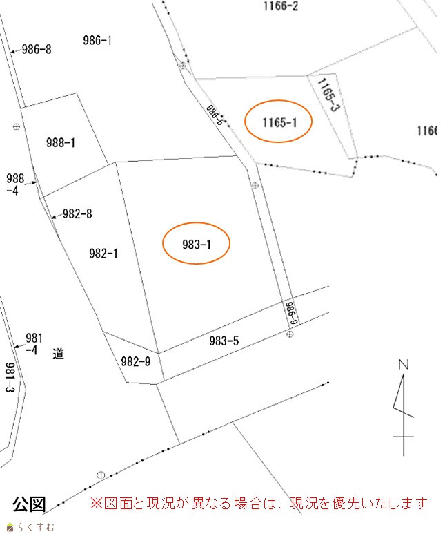| 備考 | ※上水引き込み工事負担金 別途 ※下水は刈羽村農業集落排水施設 新規加入金(16万円)別途 ※地番986-5:公衆用道路(刈羽村道) □地番1165-1に、カーポートが有ります。 |