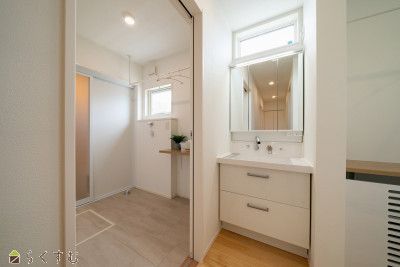2LDK、太陽光発電システム6.375kw+蓄電池システム10kw・床下冷暖房を採用、道向かいに医院あり、スーパーまで徒歩7分