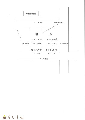 | 隣りには206.08㎡(62.33坪)811万円の3方向市道に面した角地もあります | |||