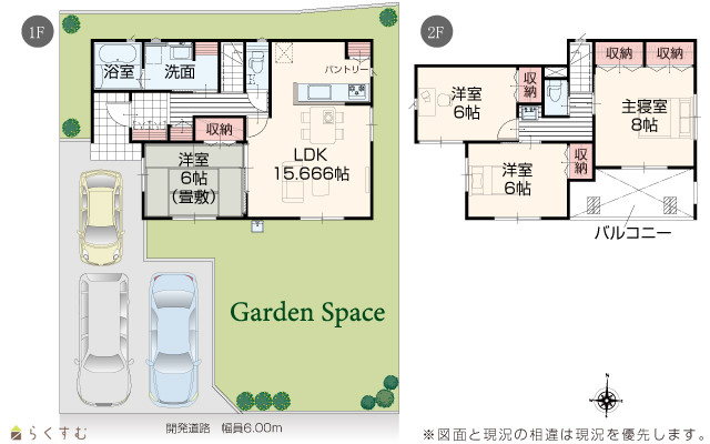 | 設備 | 前面道路6m以上、日当り良好、LDK15畳以上、駐車場3台以上、南向き、庭あり、都市ガス、上水道、下水道、電気、全居室収納あり | ||