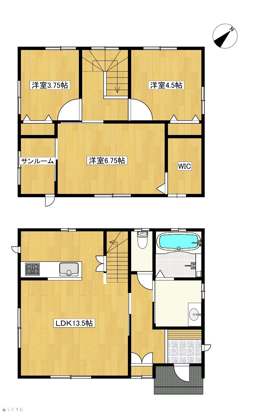 3LDK (洋室:6.75、4.5、3.75) LDK13.5 |